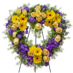 Bright yellow and purple flowers create this heart shape of vivid memories.