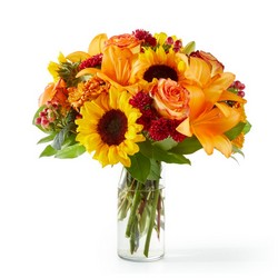 Capturing the beauty of the season, the Fall Day Bouquet brings all the warmest tones with sunflowers, roses and lilies.